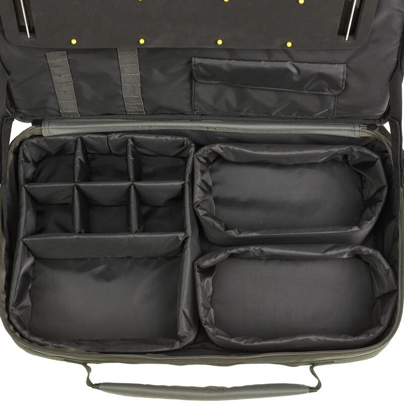 *Le ALL IN ONE L offre un volume conséquent (52 x 30 x 17cm) sous un format valise pour le carpiste dont l’objectif est de centraliser tous ses accessoires à portée de main.