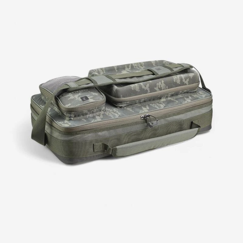 Nous avons conçu la bagagerie All in One L pour le carpiste dont l’objectif est de centraliser tous ses accessoires à portée de main.Afin d’optimiser l’organisation et la protection du petit matériel et des accessoires de montage carpe, nous avons développé la bagagerie All in One disponible en 3 tailles: S, M et L.