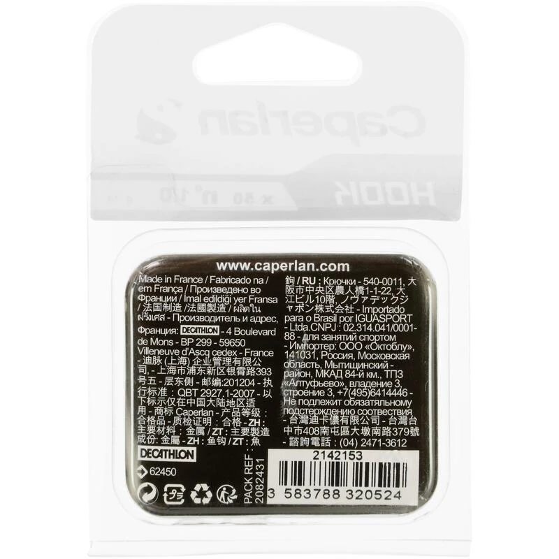 Emballage 100% Polyéthylène Hameçon de pêche 95% Acier, 5% Résine époxy